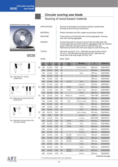 Fig.: Alternate top bevel tooth (W), 180 4,4-5,6 3,40 20 Anthon, Schelling 28F kon. 002618020