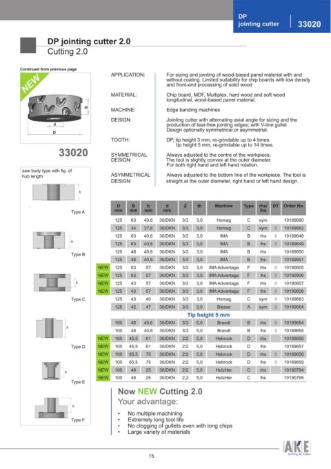 100 34 39 30/DKN 3/3 3,0 Brandt A rhs 10189609 Type C 125 43 40 30/DKN 3/3 3,0 Homag C sym ◊ 10189663