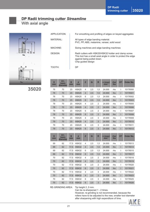 RE-GRINDING AREA: Tip height 2 ,5 mm.