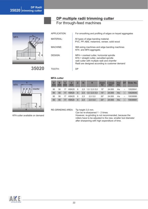 KFA cutter available on demand However, re-grinding is not recommended, because the