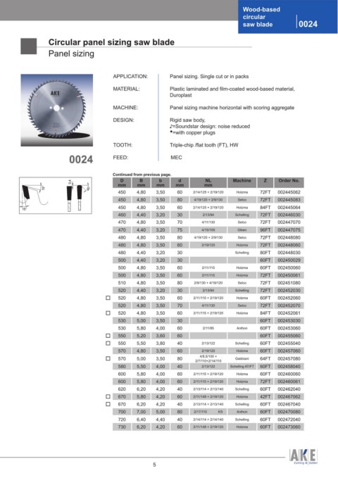 15° 450 4,80 3,50 60 2/14/125 + 2/19/120 Holzma 84FT 002445064