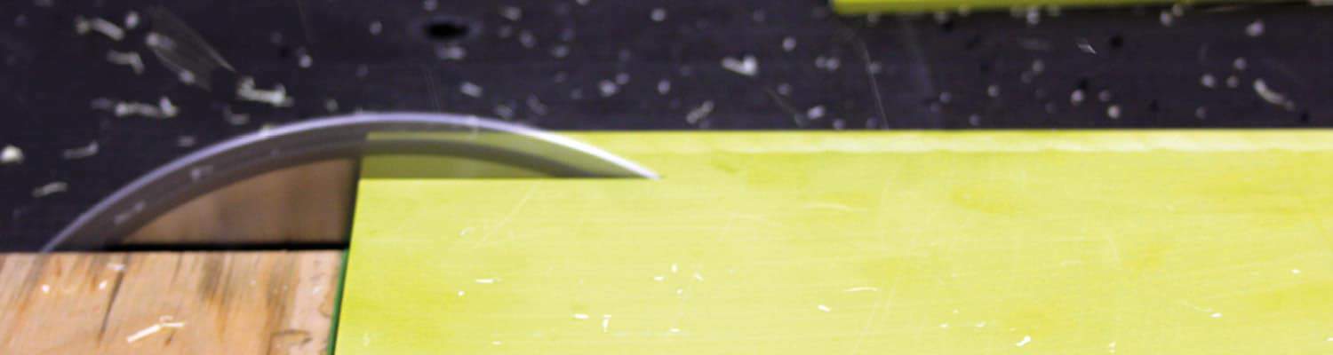 Aufgrund unserer optimierten Schneidengeometrie profitieren Sie von besonders gratarmen Schnittkanten, vibrationsarmem Arbeiten und dadurch wenig bis gar keine Nacharbeit. Bei durchsichtigem Kunststoff sind die Schnittflächen mit wenig bis gar keiner Nacharbeit glasklar. Das Kreissägeblatt ist für horizontale Plattenaufteilanlagen ausgelegt und besonders für Thermoplaste mit Sichtfläche geeignet. Dazu zählen beispielsweise Werkstoffe wie Polycarbonat (PC) und Polymethylmethacrylat (PMMA).