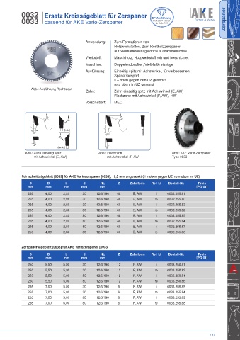 Zerspanersägeblatt [0033] für AKE Variozerspaner [0033]
