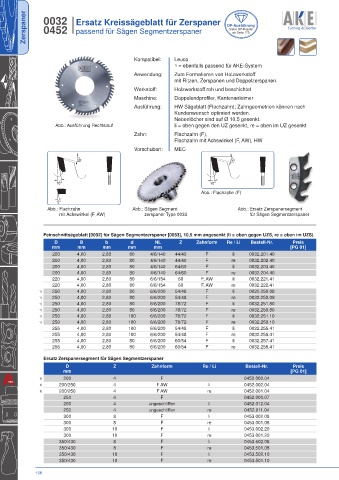 mit Achswinkel (F, AW) zerspaner Type 0033 für Sägen Segmentzerspaner