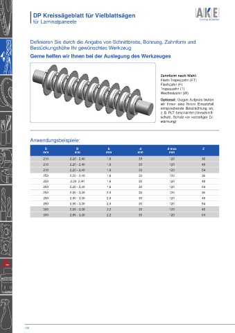 Definieren Sie durch die Angabe von Schnittbreite, Bohrung, Zahnform und