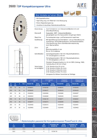 schwindigkeit: Z 36 Vorschub 36 bis 45 m/min