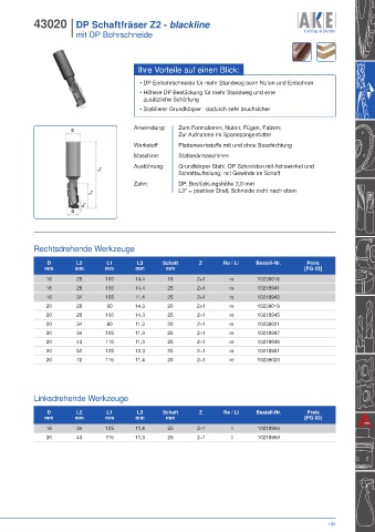 D L2 L1 L3 Schaft Z Re / Li Bestell-Nr. Preis