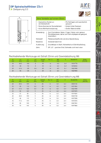 Zahn: DP; L3* = positiver Drall, Schneide zieht nach oben