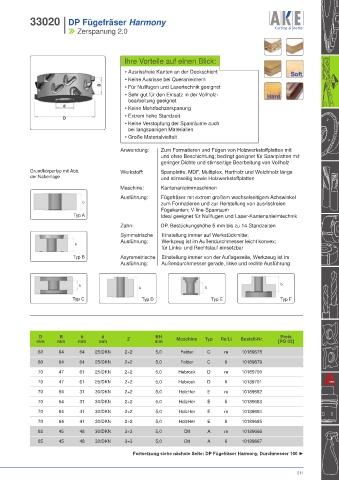 Fortsetzung siehe nächste Seite: DP Fügefräser Harmony, Durchmesser 100 ►