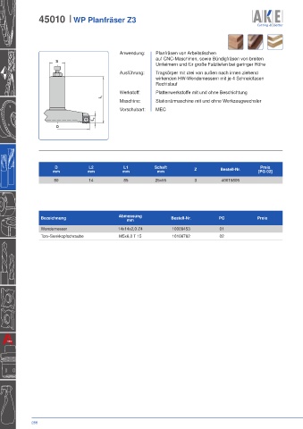 wirkenden HW-Wendemessern mit je 4 Schneidfasen