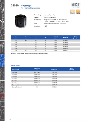 Messer 1x nachschärfbar; Ersatzmesser siehe Kapitel Messer Seite 351