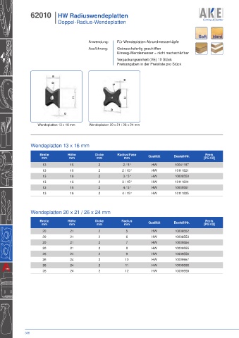 Wendeplatten 13 x 16 mm Wendeplatten 20 x 21 / 26 x 24 mm