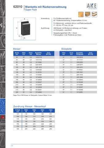 Super Pack HW Messer mit Stützplatte. Gesamt Dicke 10 mm