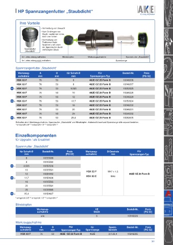 Enthalten sind: Werkzeugaufnahme, Spannmutter „Staubdicht“ und Blindstopfen. Hakenschlüssel und Spannzange bitte separat bestellen.