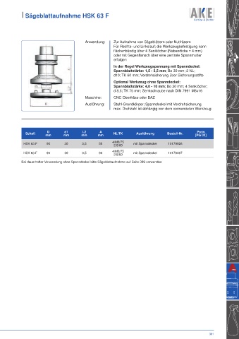 Bei dauerhafter Verwendung ohne Spanndeckel bitte Sägeblattaufnahme auf Seite 389 verwenden