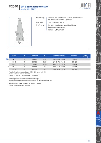 Schaft A D/Gewinde d1 Spannzangen-Typ Bestell-Nr. Preis