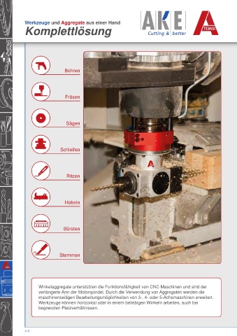 Werkzeuge können horizontal oder in einem beliebigen Winkeln arbeiten, auch bei