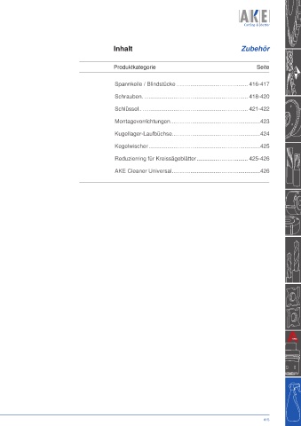 Reduzierring für Kreissägeblätter ................................. 425-426