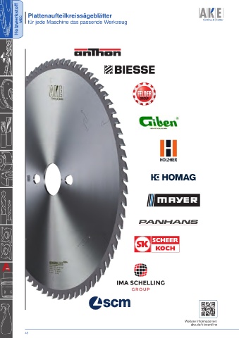 Holzwerkstoff MEC I Plattenaufteilkreissägeblätter I für jede Maschine das passende Werkzeug Weitere Informationen: ake.de/k-boardline 48