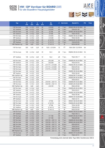 D B b d NL Maschine Z Zahn- Bestell-Nr. Preis Typ D B b d NL Z Zahnform Bestell-Nr. PG Preis