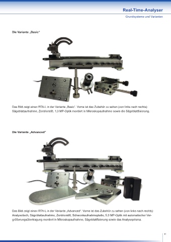 größerungsübertragung montiert in Mikroskopaufnahme, Sägeblattfixierung sowie das Analyseprisma.