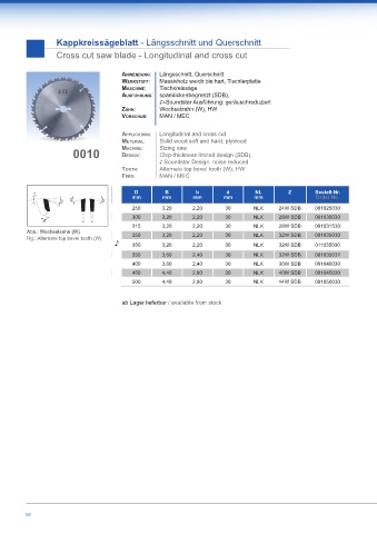 Kappkreissägeblatt - Längsschnitt und Querschnitt