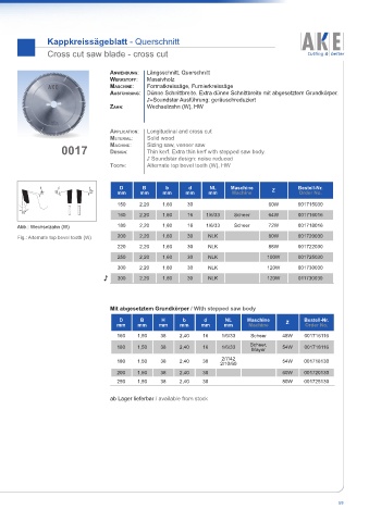 Mit abgesetztem Grundkörper / With stepped saw body