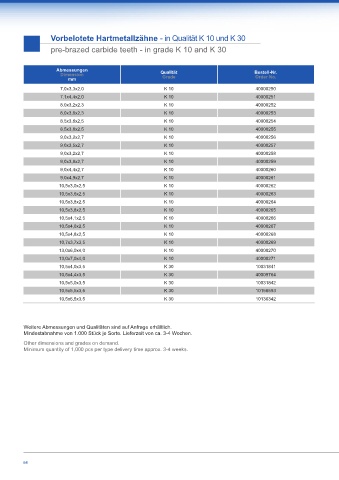 pre-brazed carbide teeth - in grade K 10 and K 30