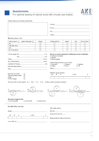 Cutting height min. ____________________________________ mm We are currently applying the following circular sawblades: