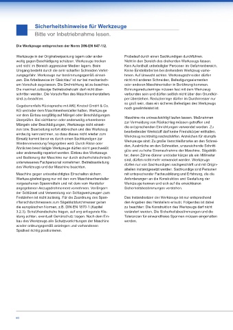 zen bzw. Bearbeitung sofort abbrechen und das Werkzeug bearbeitender Werkstoff darf keine Fremdkörper enthalten.
