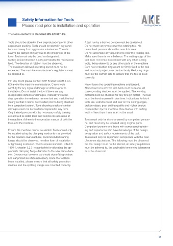 damages must not be welded or repaired in any form. consumption by the machine. Saw blades with cutting