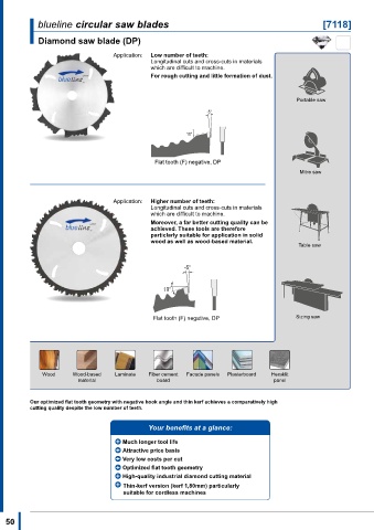 Our optimized flat tooth geometry with negative hook angle and thin kerf achieves a comparatively high