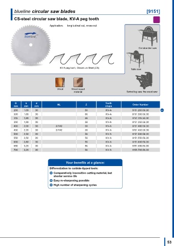 KV-A peg tooth, Chromium-Steel (CS) Table saw