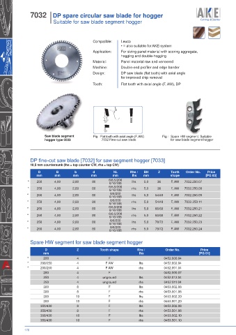 Saw blade segment Fig.: Flat tooth with axial angle (F, AW) Fig.: Spare HW segment. Suitable