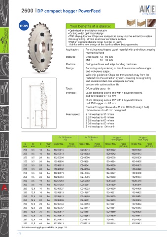 • Higher feed rate despite lower number of teeth,