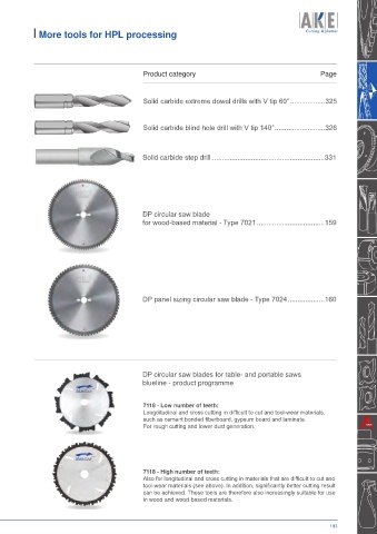 DP panel sizing circular saw blade - Type 7024 ...................160