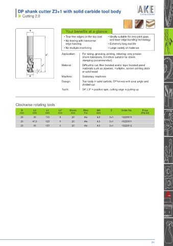 L 2 Material: Difficult to cut, fiber bonded and/or layer bonded panel