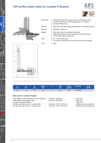 Solid carbide shank cutter for Lamello P-System Order No. 10243271 Page 254