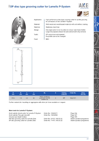 Solid carbide shank cutter for Lamello P-System Order No. 10243271 Page 254
