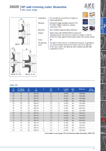 Continuation on next page: DP radii trimming cutter Streamline, HSK 32 ►