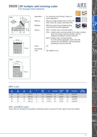 B KFA = straight cutter, swivelled spindle for for edge rounding