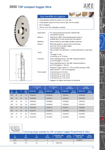 Covering plugs suitable for DP compact hogger PowerFeed & Ultra
