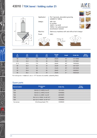 For folding cuts in chipboard, use α = 91° because of possible upstanding fibres.