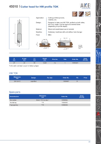 Design: Tool body with two exchangeable HW knives, Design: Designed to take one HW TOK, profiled on both sides,