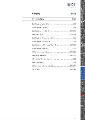Solid carbide spiral drills .......................................................312