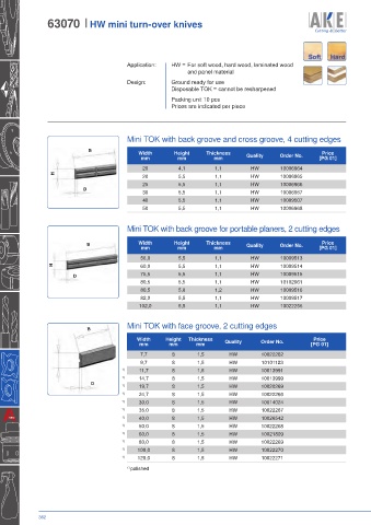 Mini TOK with back groove for portable planers, 2 cutting edges