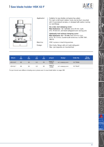 For permanent use without clamping cover, please use the saw blade holder on page 389