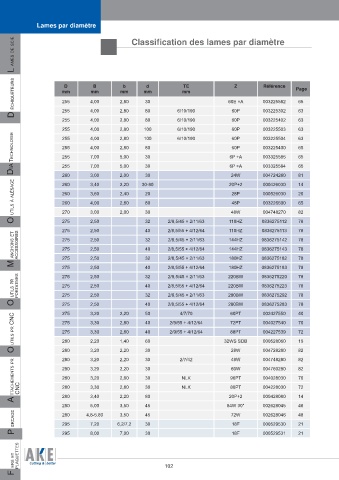 L AMES DE SCIE Classifi cation des lames par diamètre