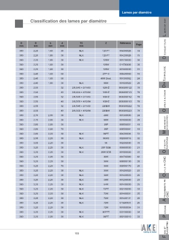 Classifi cation des lames par diamètre