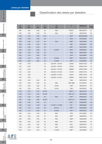 L AMES DE SCIE Classifi cation des lames par diamètre